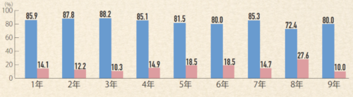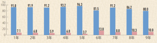 すべての学年にわたり 回答していただいた保護者さんの子どもたちが 楽しく通学していることは 心強い限りです。