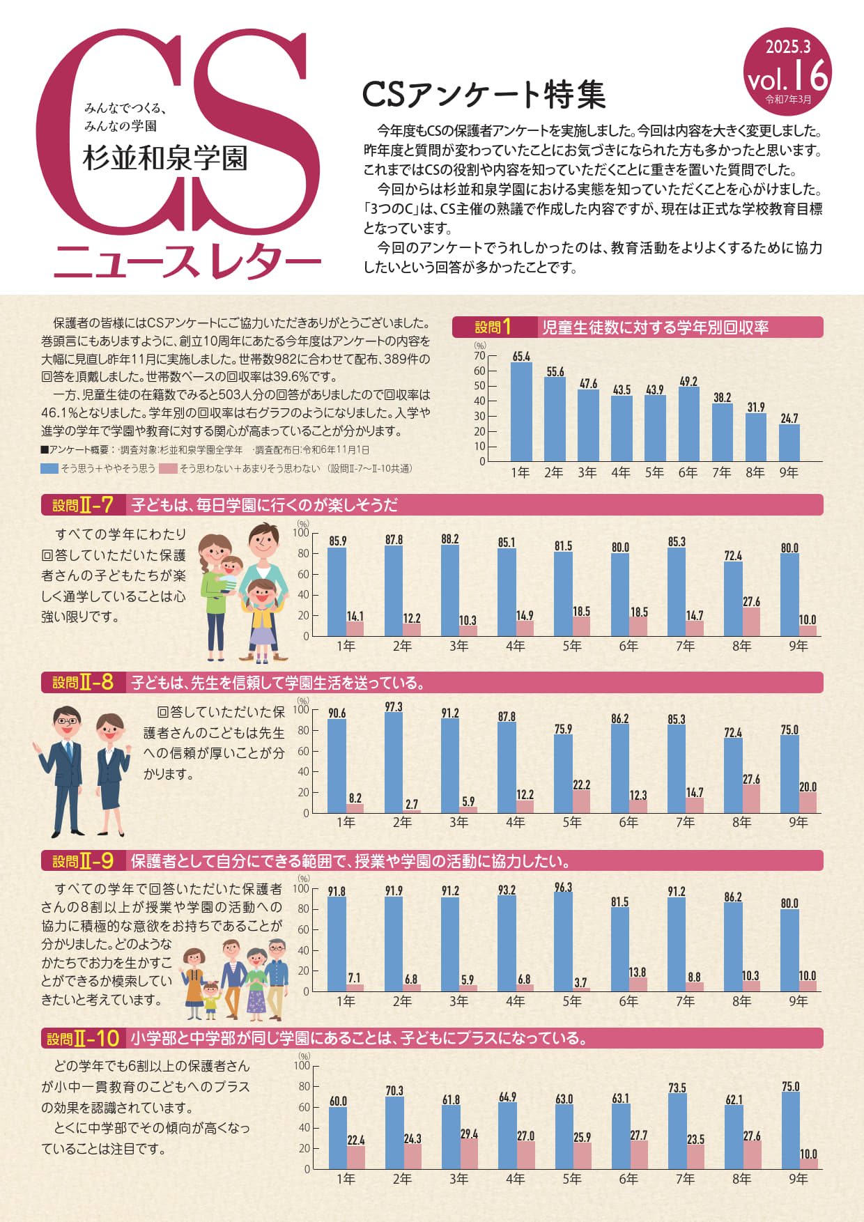 保護者の皆様にはCSアンケートにご協力いただきありがとうございました。