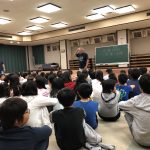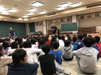 夕食の後は、地元の漁師さんをゲストティーチャーに迎えて、明日の磯観察のレクチャーを受けました。とてもユーモラスな語り口で、磯の生物の生態について楽しく学びました。明日の朝は、残念ながらあまり潮が引かないそうですが…。どんな生き物に出会えるか、楽しみです。