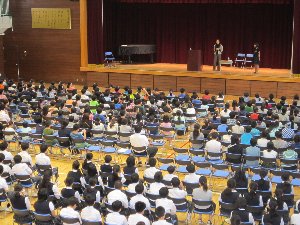 26日に土曜授業がありました。すべての学年が道徳の授業を1時間目又は2時間目に行い、その後4~9年生が講演会に参加しました。講演会の講師は、忍足亜希子さんです。忍足さんは、ろう者の女優として、映画「アイ・ラブ・ユー」で主演し、「黄泉がえり」等にも出演しました。