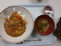 5組仲よし学級では、前回に引き続き、今回もカレーライス、みそ汁、2色ゼリーを作りました。カレーライスは4・5・6年生、みそ汁は2・3年生、2色ゼリーは1年生が担当しました。カレーライスグループでは、前回の経験を生かし、調理器具の扱い方を思い出しながら、より手早く切ったりかき混ぜたりすることに挑戦しました。みそ汁グループでは、大根やニラを切ったり、にぼしでダシをとったりしました。ダシとりでは、にぼしで残す部分と除去する部分を考え、大事に使うことを心がけました。ゼリーグループでは、今回はりんごゼリーの上にぶどうゼリーをのせて、2色ゼリーにしました。30人分くらいのゼリーを作ることができました。最後に楽しく会食ができました。次回は、新しいメニューに取り組む予定です。