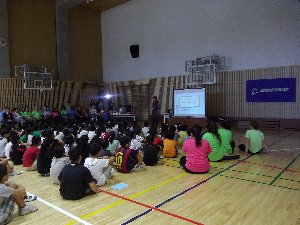 9月28日(月)の午後に、小アリーナで5年生がボーイング社やアメリカ大使館、シアトル航空博物館などの先生から授業を受けました。