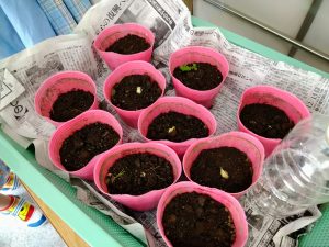 先日、教室で大豆の栽培を始めました。黒豆、きなこ、納豆、豆腐・・・何に変身させようか、今から楽しみな子供たちです。