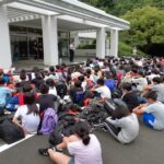 元気に学園を出発。週末の天候で通行止めの道路の規制が解除となり、予定通りのルートで進むこととなりました。車内でも、互いに気を遣い合いながら、次第に雨も上がり、雨具の必要もなくトイレ休憩ができました。天城を越え、下田海中水族館で昼食を済ませ