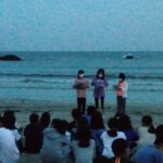 開室式でクラブの職員の皆様に挨拶をし、改めて三つのスローガンを確認し、弓ヶ浜での生活です。入浴、時計作り、夕食、ナイトハイク…みんなで声を掛け合いなから、予定の時間通りに過ごしました。