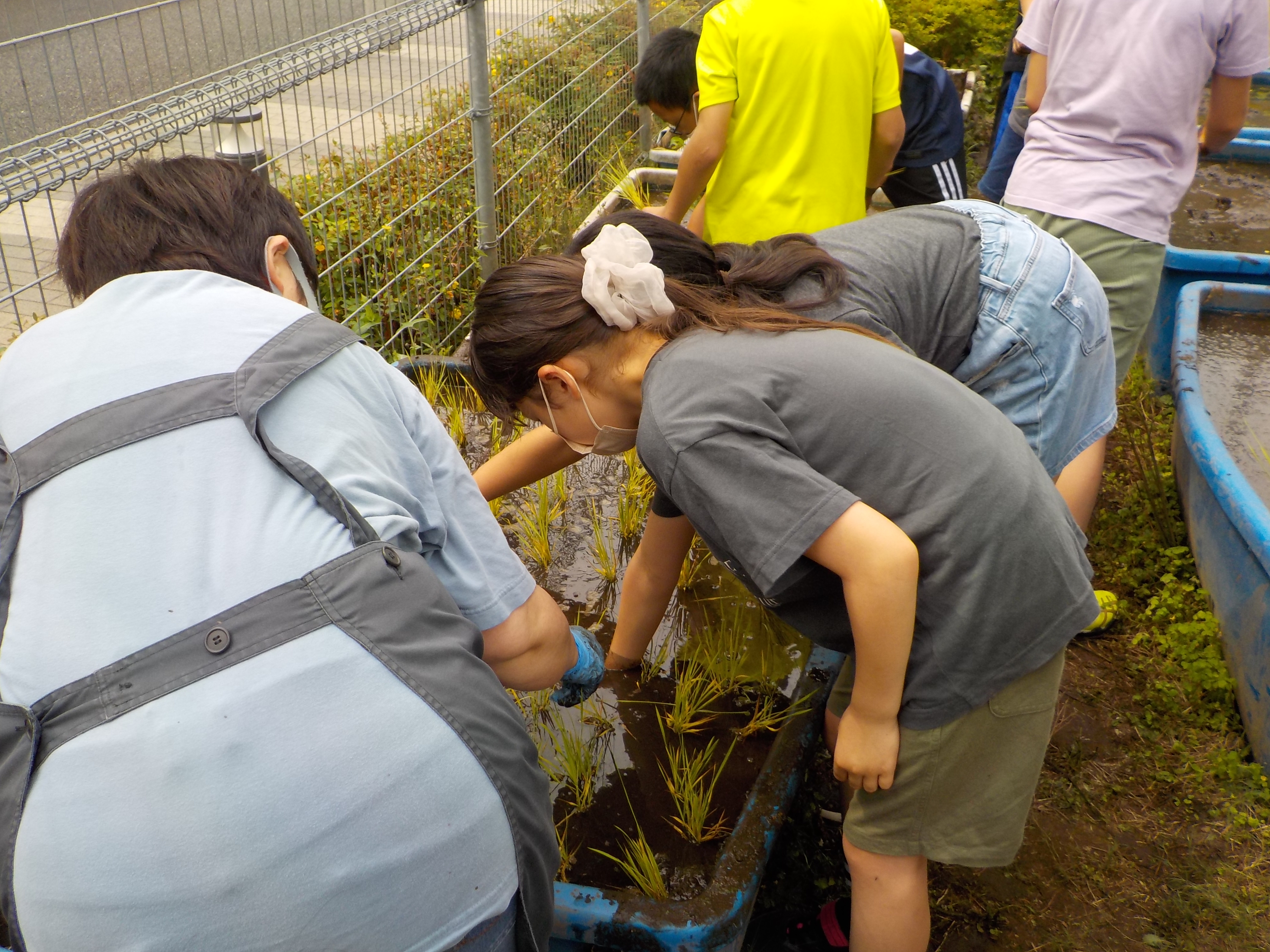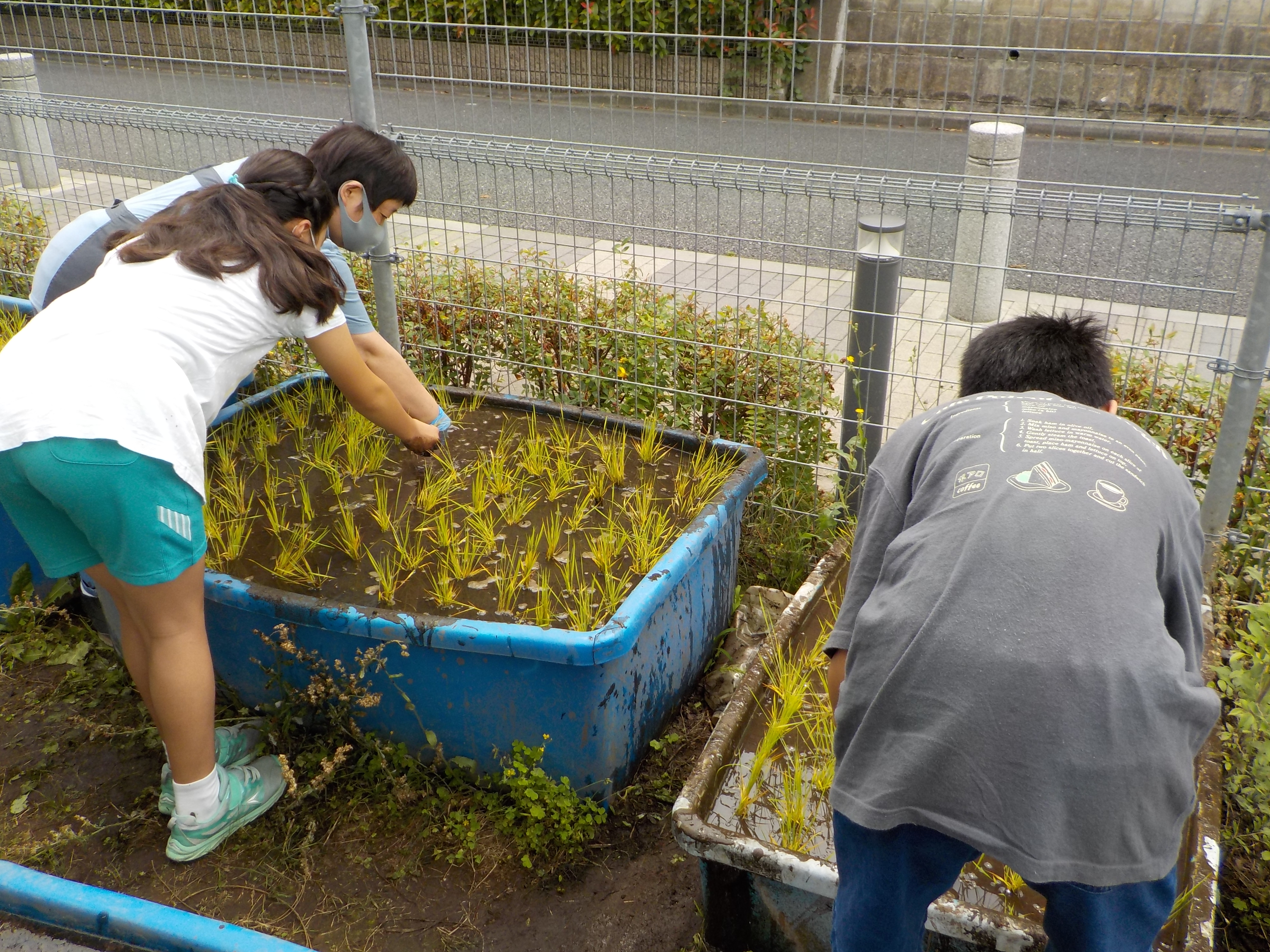 「最初は、よごれるのがいやだと思ったけどたくさん植えているうちに楽しくなってきた。」「これから花になって米になることがまだ想像できない。どんな風に育つのかわくわくする!」「地域の方や学校支援本部の方が、一生懸命教えてくださったので、私たちも頑張って育てていきたい。」「農家さんが泥だらけになって作っているお米を、毎日食べられることに感謝しなければならないと思った。そして、米の一粒一粒を大切にしなければならないと思った。」