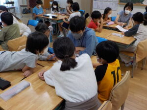 子供たちは、グループごとに難しい文章を「やさしい日本語」に直す活動を行いました。