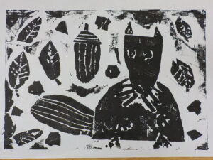 図工の授業「版画に挑戦」では、スチレン版画に取り組みました。 生活単元見学で行った井の頭自然文化園にいたミーアキャットやリス、モルモットなどの動物を思い出しながら版を作り、絵具を塗って刷りました。 何度も同じ絵が刷れる面白さを感じながら、取り組むことができました。