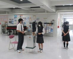9月12日(木)立会演説会・生徒会役員選挙を実施しました。 選挙管理委員を中心に、運営を行いました。 杉並和泉学園の生徒会がますます発展するよう努力する決意で立候補しました。
