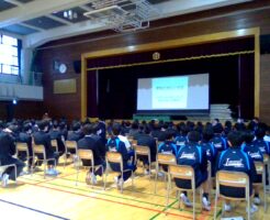 「情報モラル教育(身近なSNSトラブルの事例から、自身の使い方を見直せるようになる。)」を実施しました。 ZAQ あんしんネット教室by J:COMの講師の方をお招きし、アンケート結果をもとにお話しいただきました。 「自・・・