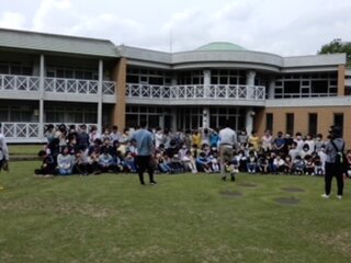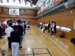 6月1日水曜日、天気に恵まれ第5学年の移動教室の1日目.先程、宿舎の富士学園に到着し、開園式を行いました。