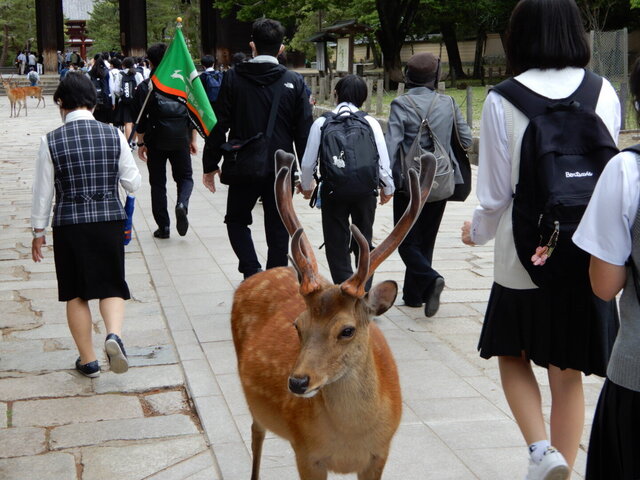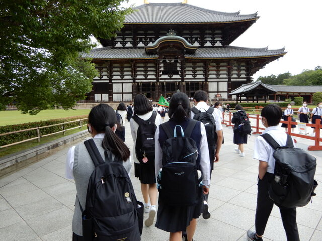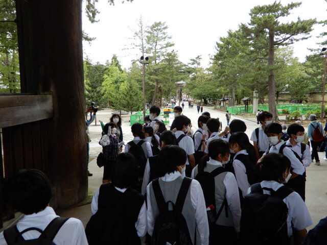 今日の見学地、奈良公園では、雨が奇跡的にあがり、傘無しで班別行動をすることができました。生徒たちの大仏の大きさに驚いたり、鹿と戯れたりする光景を見ることが出来ました。