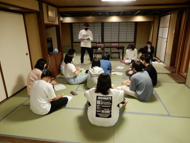 夜の9時から開かれた班長会議では、各部屋での様子などが報告されました。学年主任の齋藤先生からは、お風呂の使い方などの注意がされていました。