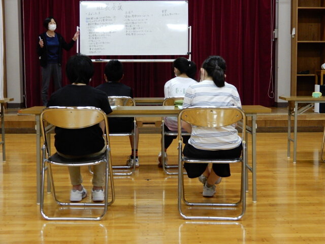 夜8時30分から開かれた各学校の代表者が集まる班長会には、9年生の学級代表が出席し、2日目の活動・生活の成果を堂々と発表していました。