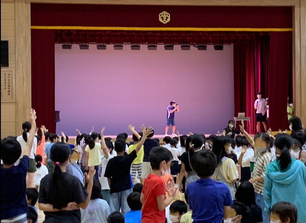 6月22日(木)、1校時始業前、本学園大アリーナにおいて、集会委員会の児童を中心に、小学部全学級(移動教室初日のくすのき学級児童を除く)による本年度2目となる児童集会が行われました。