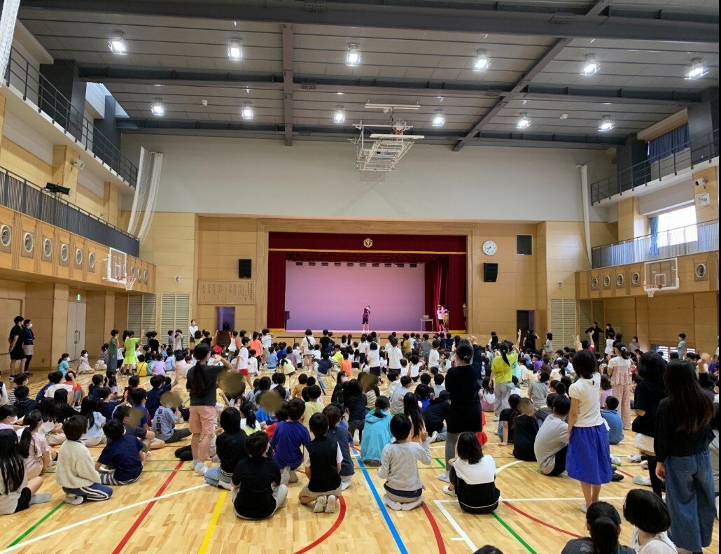 全学級の児童が大アリーナに一堂に会して「ゲーム・レクリェーション」を行う児童集会は、開園以来、初めてとなります。今日の集会のゲームは、代表児童とギャラリーの児童が「じゃんけん」をするという簡単なものでしたが、皆がとても盛り上がる集会となりました。