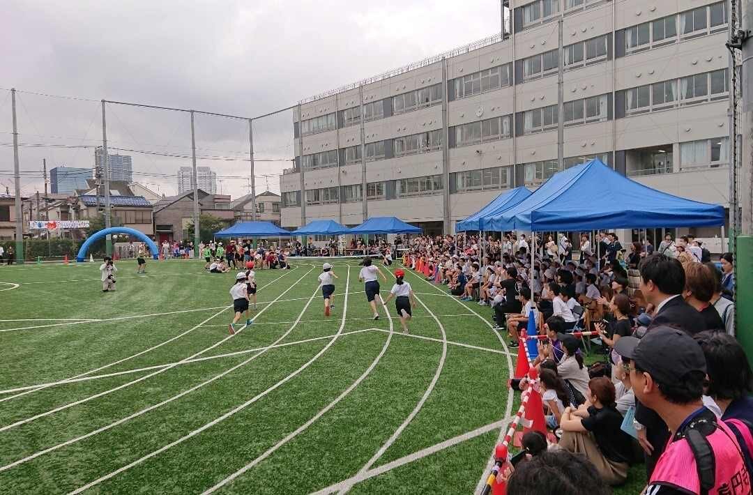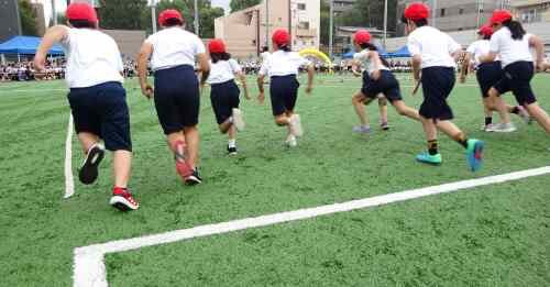 名称を小中学部ともに「体育祭」と変更したのは、阿波おどりなどの「祭り」文化がはぐくまれている高円寺のまちに建つ本学園としても、その文化を担う児童・生徒を育てたいという思いが込められています。また、とかく教員が主導となりがちな体育的行事を、高校の行事のように、児童・生徒が立案したり、高学年が中心に動かしていったりするように少しずつなっていく事を期待したものです。6月に実施した中学部の体育祭も生徒が主体性と使命感をもって競技運営をしていましたが、今日の小学部体育祭においても、6年生が係活動などで、自主性や責任感を発揮していました。