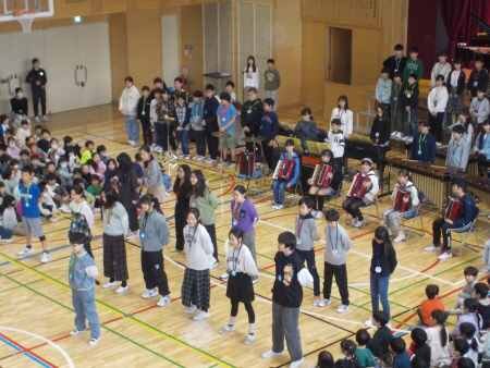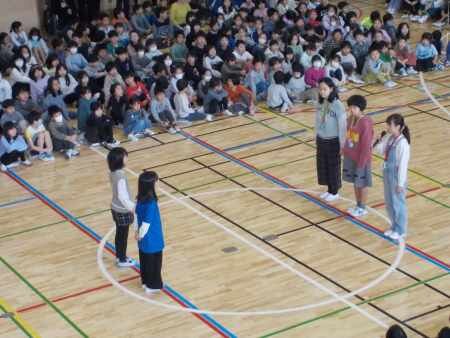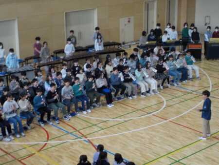 3月1日金曜日の2校時、本学園大アリーナにおいて、小学部を24日後に卒業する6年生に感謝の気持ちを伝える6年生を送る会が行われました。