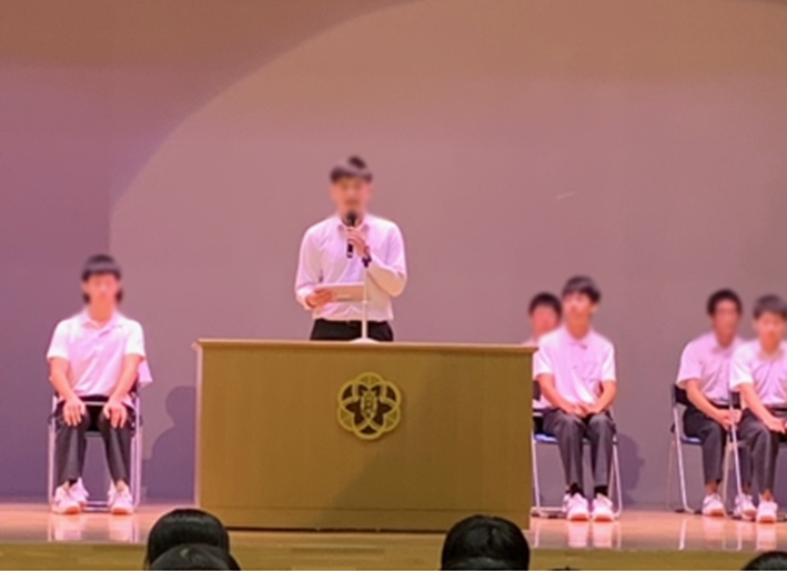 10月4日金曜日の6校時、大アリーナにおいて、令和6年度中学部生徒会役員選挙とその立会演説会が行われました。今年の立候補者も、昨年同様、会長を含む生徒会本部役員6名の定員に対して、7・8年生から6名が立候補しているので、生徒会会長、本部役員ともに信任投票となります。