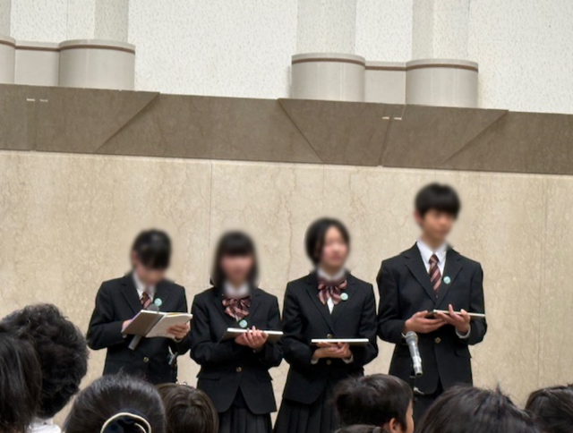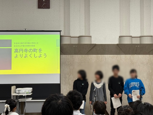 1月18日土曜日、今年も6年生、7年生の代表が、区役所で行われた令和6年度杉並区小中学生環境サミット発表会に参加し、総合的な学習の時間の研究成果を発表しました。