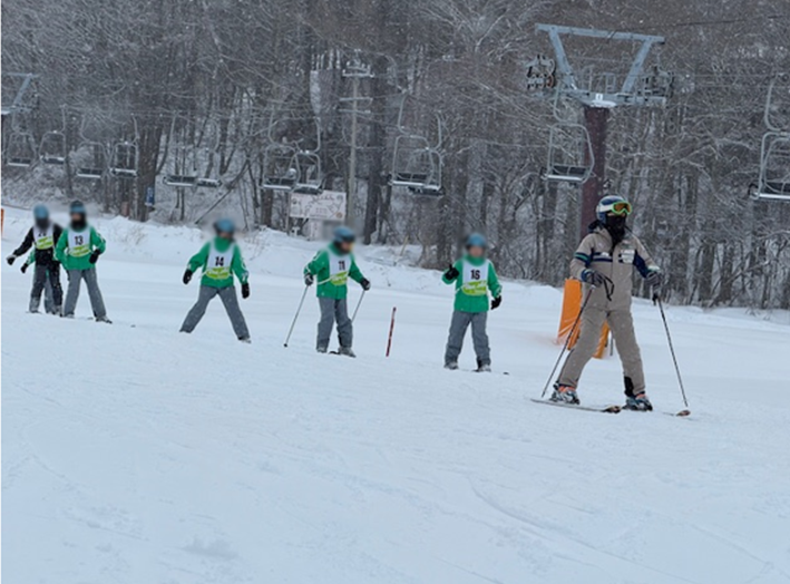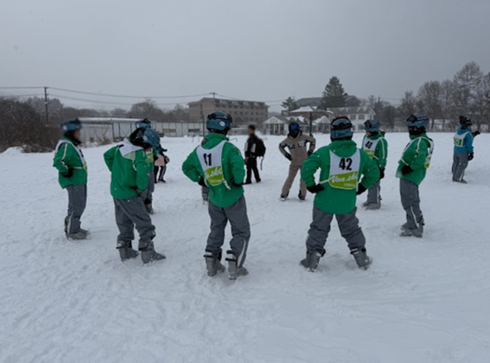 経験者グループが早くもリフトに乗り、トレーン(スキーで縦に連なって滑る練習方法)で斜面を滑っている様子を見て、感心したり、羨ましがったりしている様子も見られました。