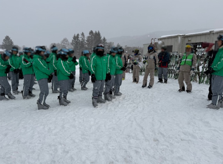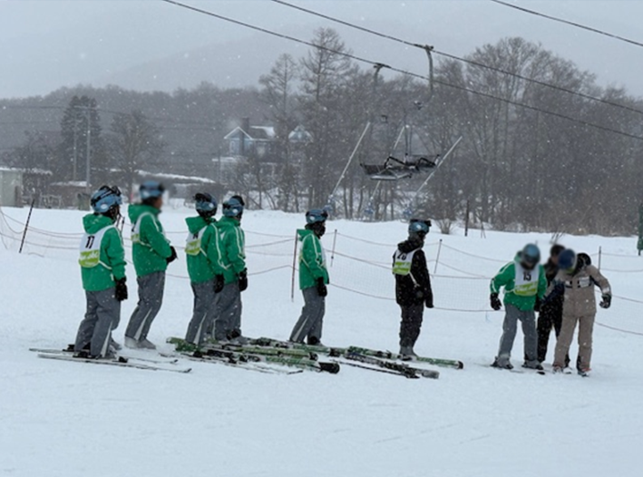 今日の午後はスキー場でスキースクール開講式をした後、各班に分かれてインストラクターの方からスキーを教えていただきました。