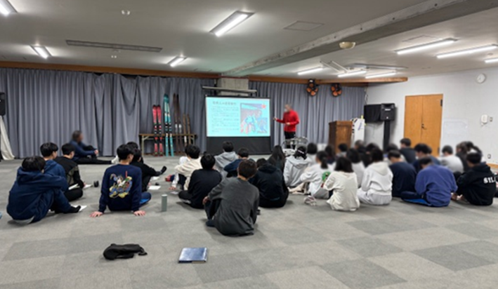 夕食後は、サラエボオリンピックの大回転などに出場した heroスキースクール校長の岩谷高峰氏からスキーの歴史、ご自身の経験談などをご講義いただきました。