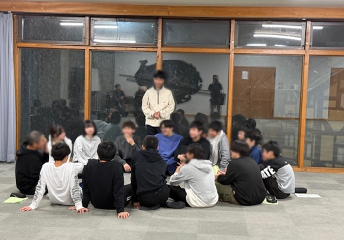 講演会の後に行われた係会議では、明日のスケジュール確認や宿舎を出発する前にしなければならない事などの最終確認がされました。その後、昨日と同様、10時に消灯しましたが、早く眠りにつく生徒がほとんどでした。