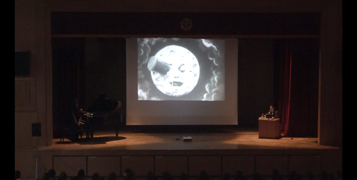 鑑賞したサイレント映画は、1902年に公開されたジョルジュ・メリエス監督・脚本・主演の「月世界旅行」と1917年公開のチャーリー・チャップリン監督・脚本・主演の「チャップリンの大冒険」でしたが、児童・生徒たちは大笑いで鑑賞していました。特に、中学部の生徒は今日まで学年末考査であったため、きっと、久しぶりにリラックスした時間になったものと思います。