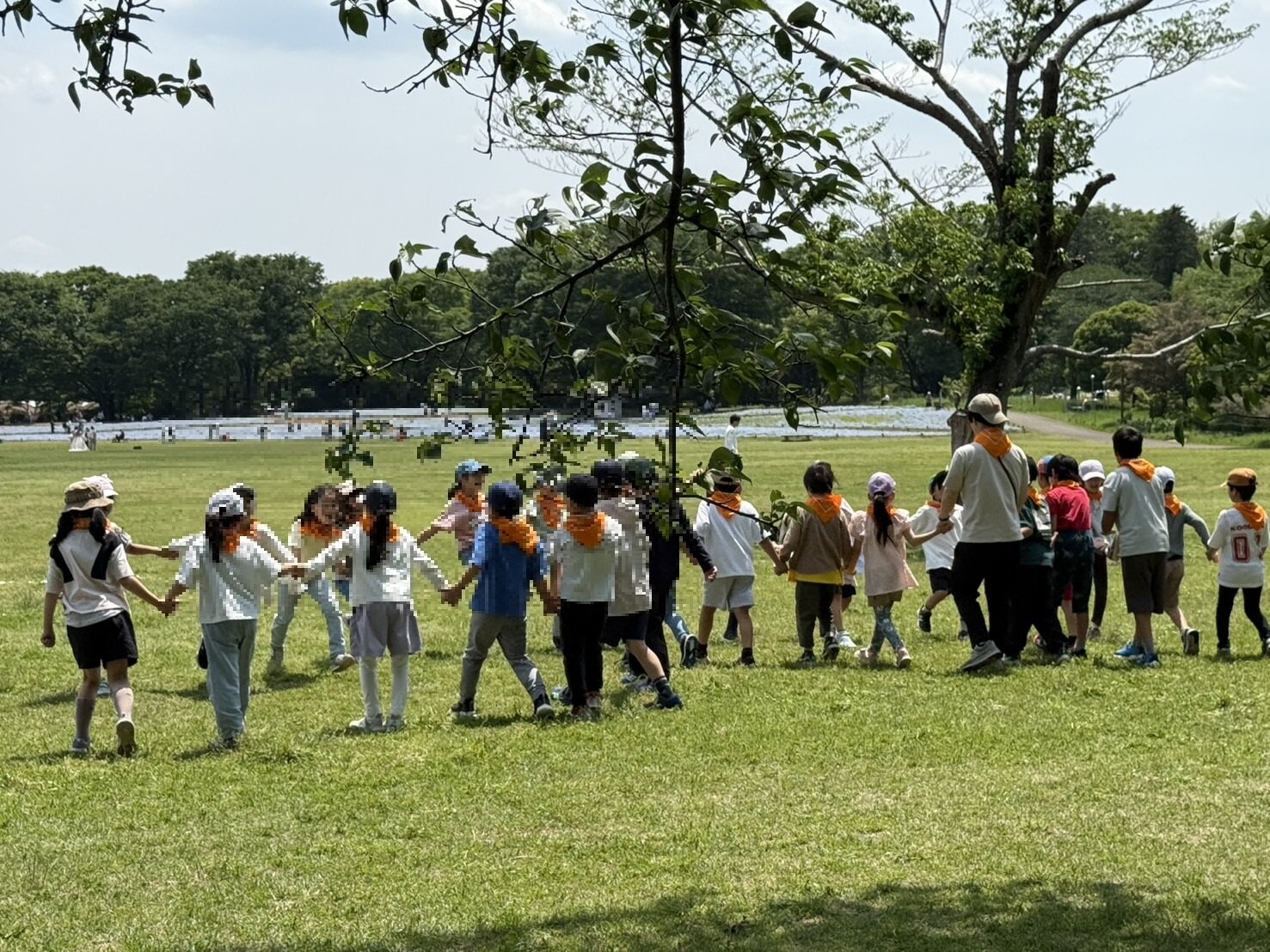 昭和記念公園の原っぱで学級担任の先生と3年生たちが仲良く遊ぶ姿を見て、担任教諭と児童との関係性も深まっているように感じました。ご安心ください。