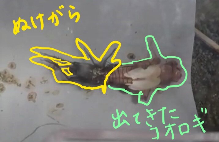 そんな週末、なんとコオロギの脱皮の様子を友達が送ってくれました。友達の家で、コオロギが脱皮したそうです。