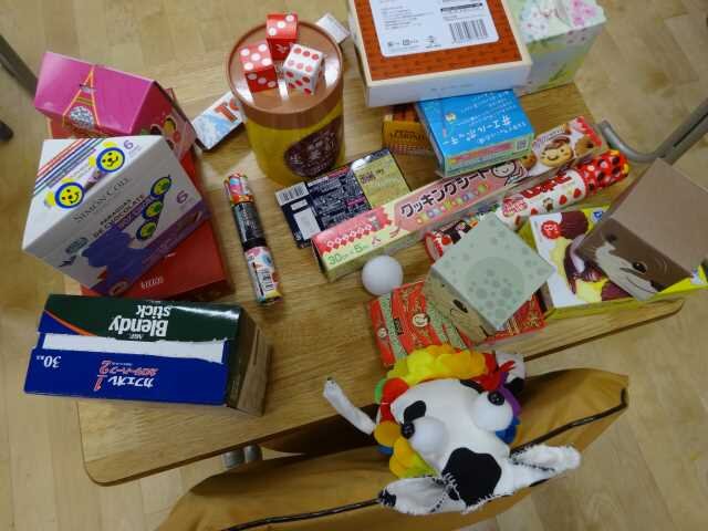 モーモーくん、箱をたくさん集めたね。 何をするのかな? 箱を使って作って……