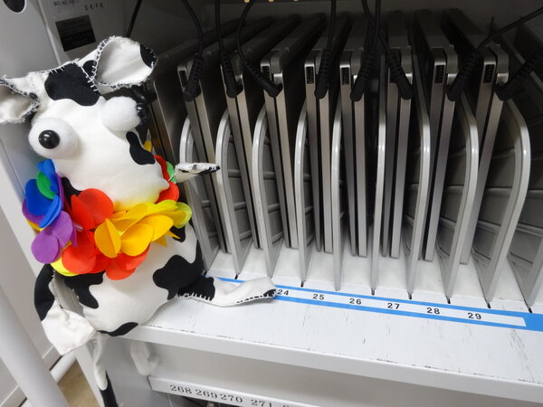 算数で、身の回りにある2桁の数を探しました。 モーモーくんは、タブレット……