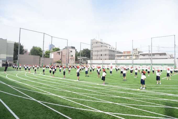 高円寺オリンピックに向けて、ダンスの練習を始めました。 校庭で大きく広が……