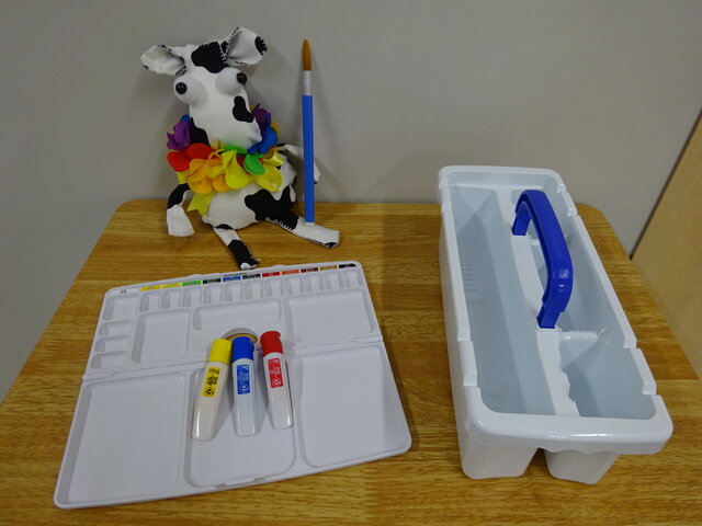 図工の時間、絵の具セットを使い始めました。 一つ一つの細かい道具にまで名……