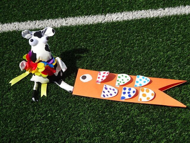 図工の時間にこいのぼりを作りました。 前回、クレパスの持ち方や色の塗り方……