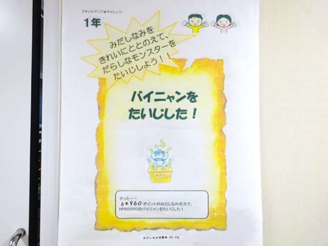 登校してきた1年生が、何やら集まっています。 そこには「だらしなモンスタ……