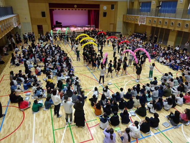 小学部全員が大アリーナに集まり、6年生を送る会を行いました。 1~5年生……