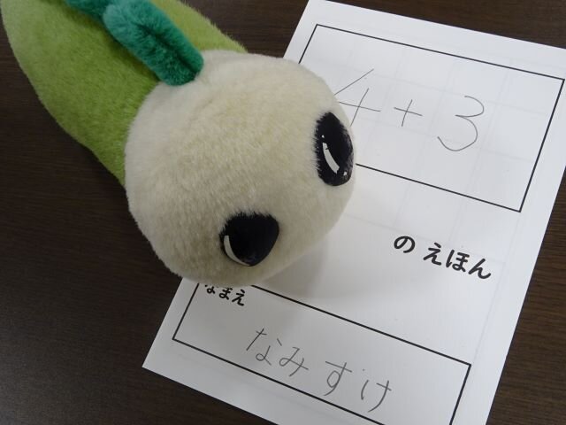 1年生は算数の学習で「たしざんえほん」を作りました。 たし算の式を絵本に……