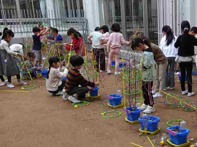 種を採った後のアサガオは、植木鉢から外してリース作りの材料にしました。