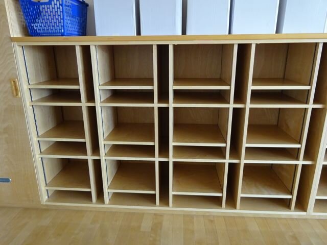 途中に棚板はあるけれど、縦に3人分の棚があります。