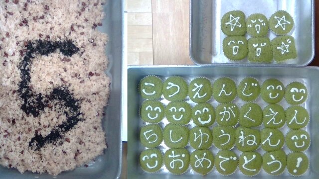 食缶を開けると、お赤飯には「5」の文字が。