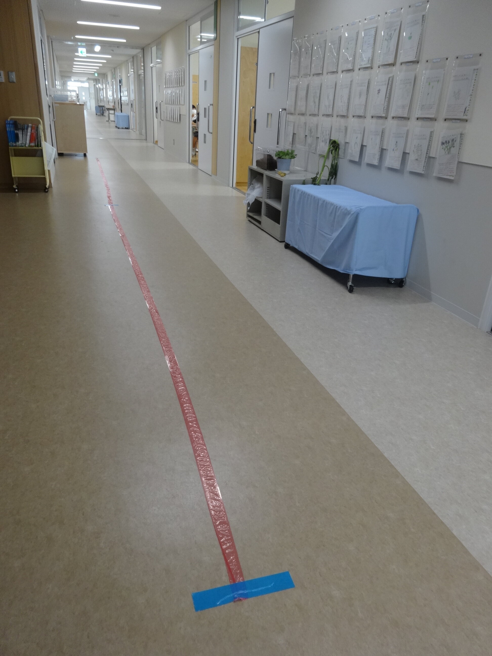 子どもたちは、実際に歩いてみて10mの長さを確認していました。