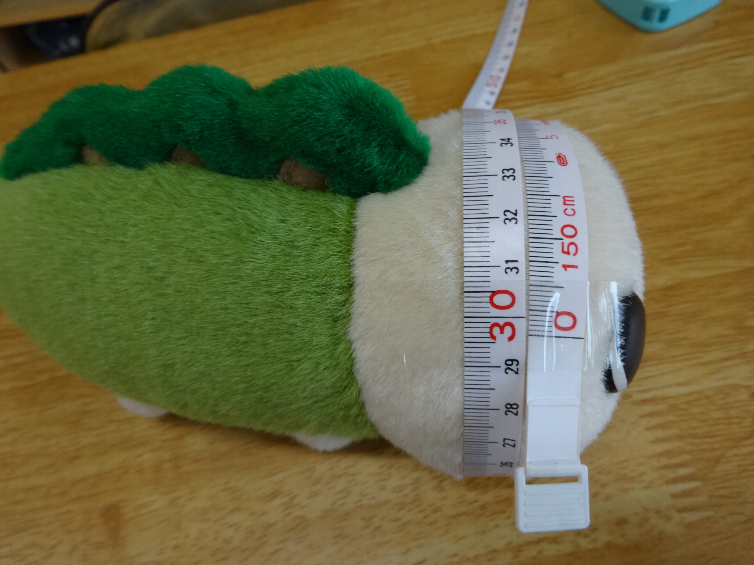 3学年同じ長さ? 2020.07.08 今日はさんたろうではなく、なみすけの登場です。 なみすけが、頭に付けているのは何でしょう? 巻尺でした。 頭の大きさを測っていたのですね。 このなみすけの頭は、約30cmということが分かりました。 さて、30cmはどのくらいか思い浮かべることはできますか? 直線にしてみると、このようになります。 まわりの長さを測ったときと、直線にしたときでは、 長さの感じ方が変わりますね。