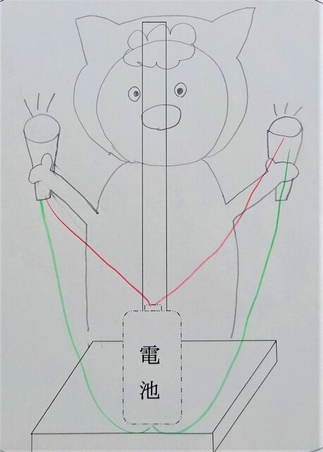 例えば、左のネコは上下に動いて、電池に触れると明かりがつくようになっています。