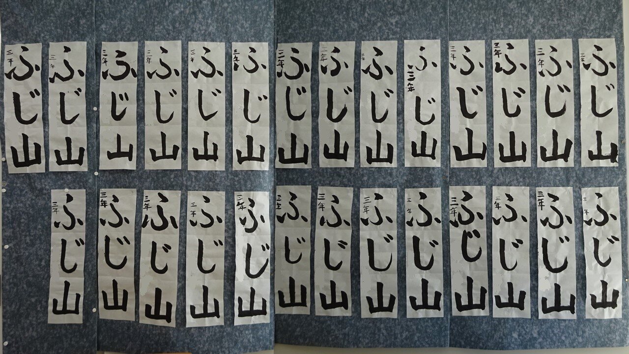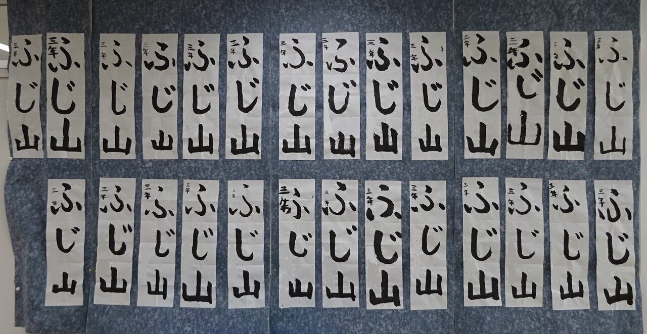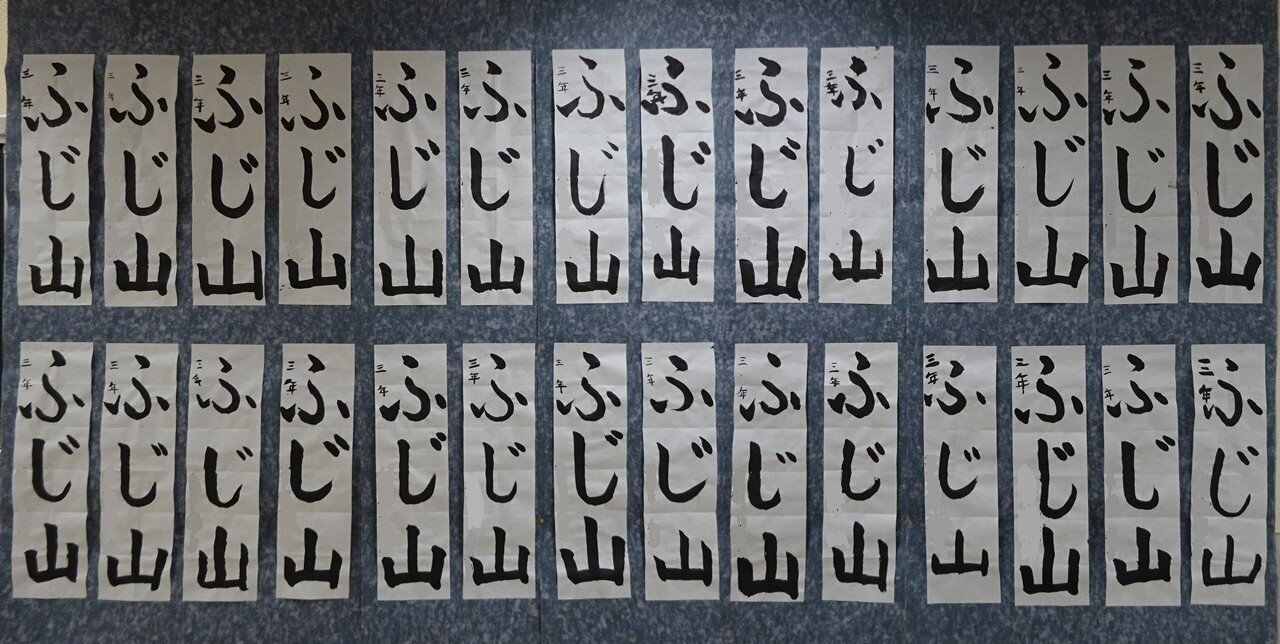 3学年校内書き初め展 2021.01.22 今週は、校内書き初め展を行っています。 今年度は感染症対策として保護者の方への公開ができず残念ですが、子どもたちはクラスの友達が書いた書き初めや他のクラス、他の学年の書き初めを見ることができお互いによい刺激を受けることができました。 各クラスの書き初めです。 個人情報保護の観点から、名前は消してありますので、ご了承ください。 画像をクリックすると大きく表示されます。 <1組> <2組> <3組>