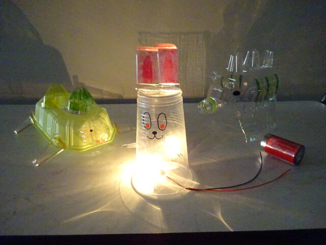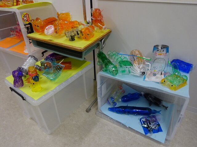 3学年クリスタルアニマル 2021.01.29 図工で「クリスタルアニマル」を作りました。 透明な容器の準備など、ご協力ありがとうございました。 子どもたちは自分の好きな動物を作ったり、容器の形からイメージした動物を作ったりしていました。 家に持ち帰ったら、明かりがつくものを入れて楽しんでくださいね。 理科出前授業で持ち帰った豆電球も使えますし、ご家庭にあるミニライトや懐中電灯でもいいと思います。