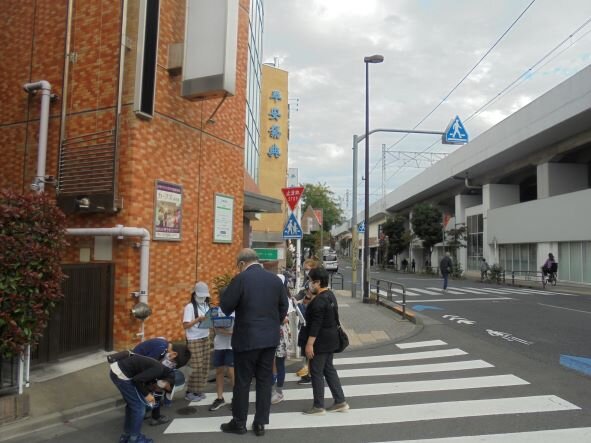 かるたを作るには、まず高円寺について学ぼう!ということで、講師の方に実際に高円寺を案内していただきながら、自分たちが住む街を深く知ることができました。