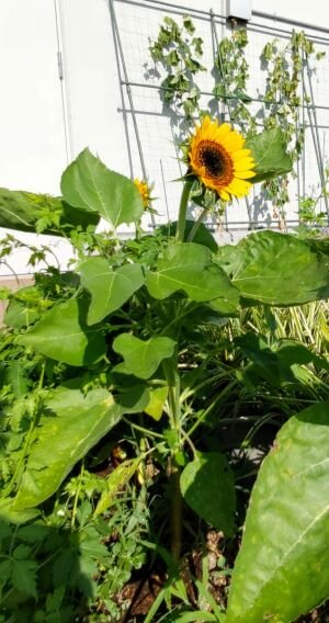 金曜日にはまだつぼみだったヒマワリの花がようやく咲きました。