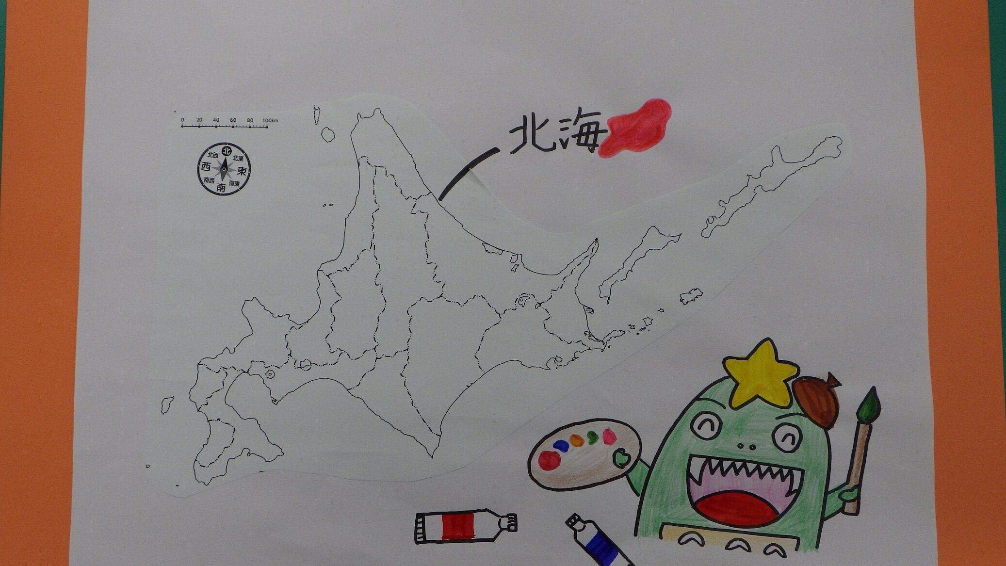 お絵かき中のスタゴンが、北海道・東北地方の地図に絵の具をこぼしてしまいました。
